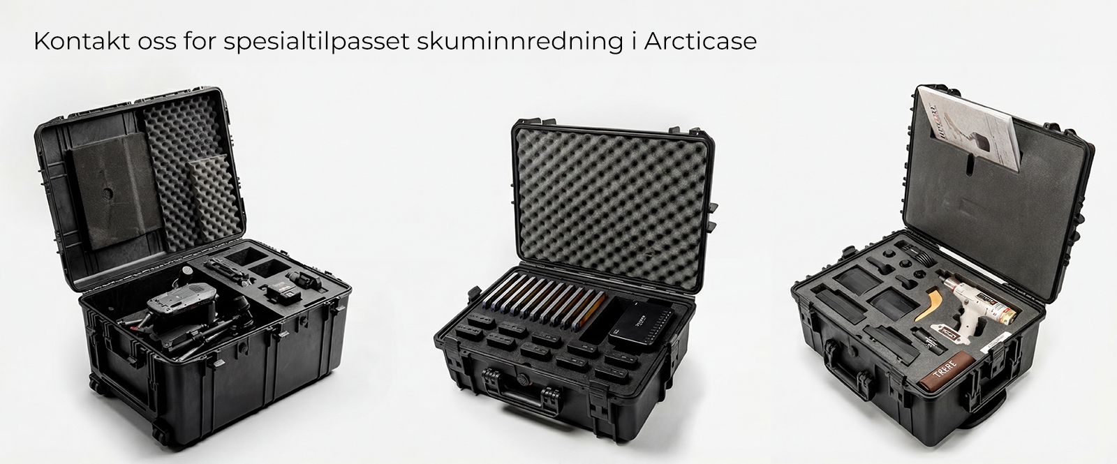 Arcticase gir overlegen beskyttelse mot vann, støv og støt når man transporterer verdifullt utstyr. IP67-klassifisert, ATA 300-sertifisert og militært testet i henhold til STANAG 4280 og DEF STAN 81-41 gjør disse koffertene svært godt egnet for bruk i maritim sektor, til foto og elektronikk, dykking, medisin og militær bruk. Arcticase er produsert i Europa og leveres med livstidsgaranti. Vi kan også produsere speialtilpasset skuminnredning til alle Arcticase-modellene. Les mer om Arcticase på www.arcticase.com